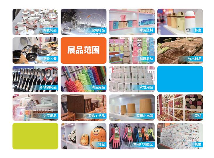 陶瓷制品、玻璃制品、家用塑料制品、杯壶、休闲/户外/园艺、竹木制品、清洁用品、厨具/炊具/刀具/餐具、浴室用品、储藏/收纳、家饰/工艺品/摆件、衡具/量具、家用小电器、一次性用品、家纺、箱包、不锈钢制品、其它等