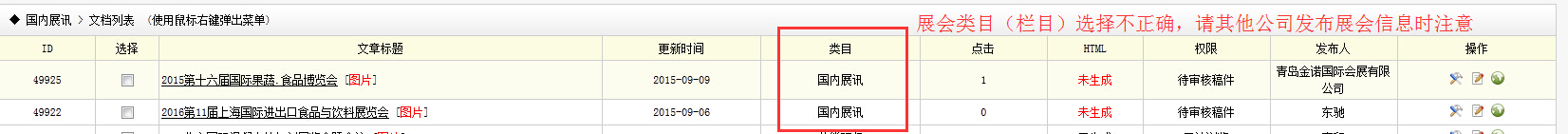 会员发布展会信息请先选择对的类目(栏目)后在发布,发布纠正次数过多会影响入驻企业信誉值,请各单位注意网站会展网审核标准,目前是通过电话核实和企业认证两种方式。
