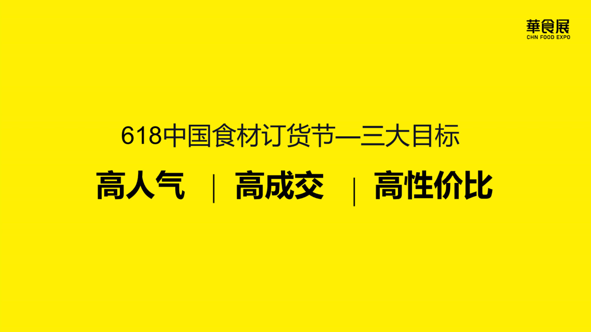 顺应时局新征程,赢在起点,华食展-CFIE中国食材展(同期举办618中国食材订货节),100000平方米展出规模,设立肉禽类食品展区、冷冻速冻食品展区、水产品展区、果蔬农副食品展区、火锅烧烤材料展区、预制菜品展区、米面粮油及调味品展区、食品设备及包装机械等特色展区,将于2021年6月18-20日在上海国家会展中心耀世登场。