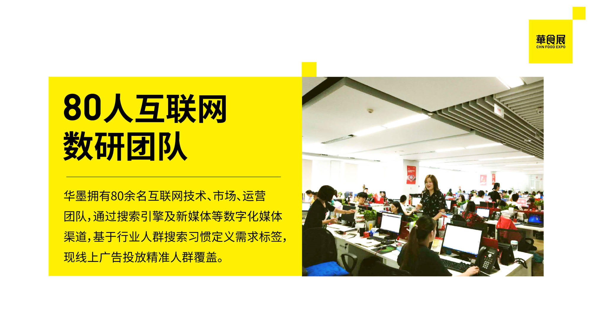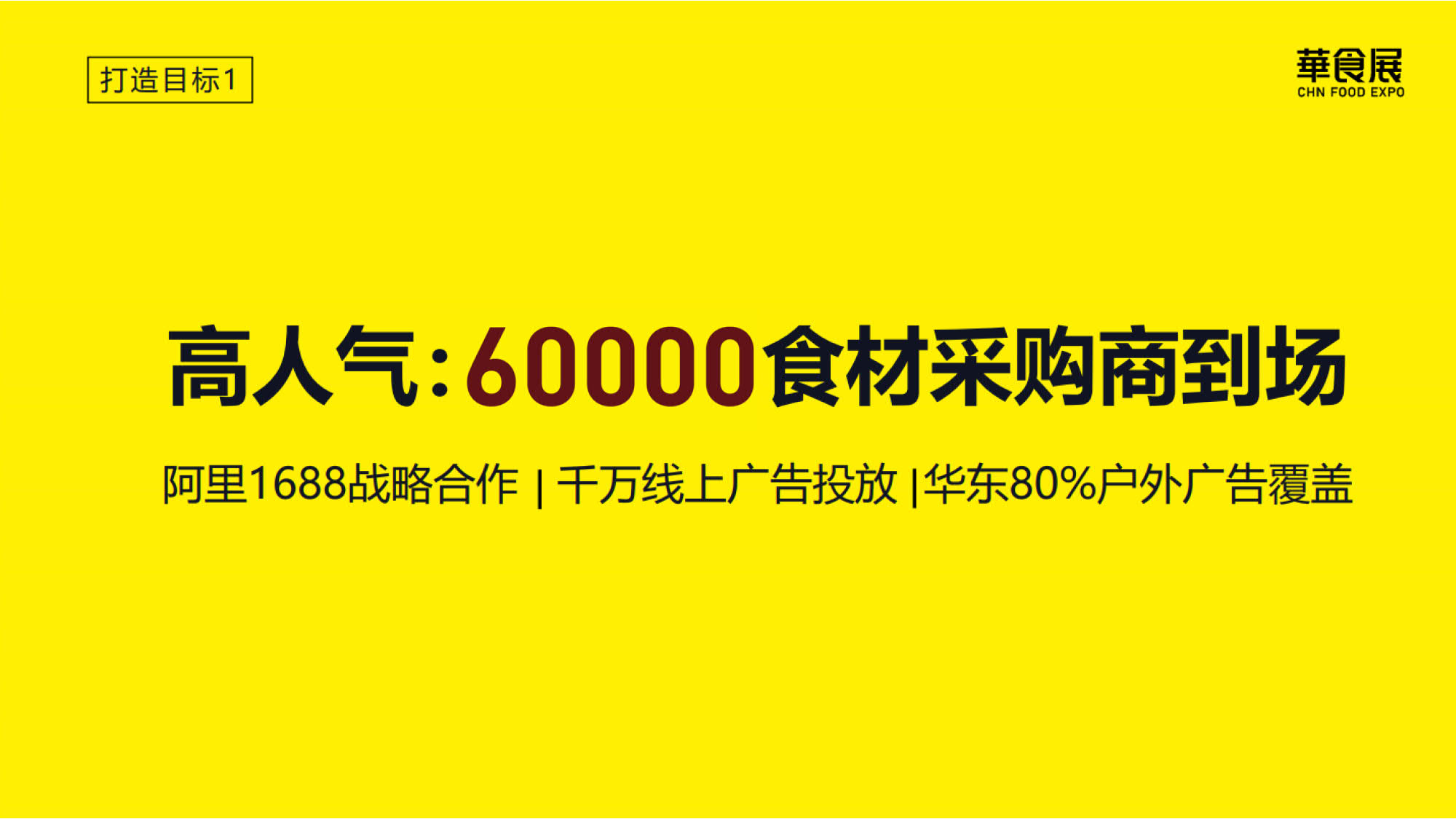 华食展将以数字为驱动,通过搜索引擎及新媒体,基于行业人群搜索习惯定义需求标签,全渠道多维定向,精准投放,多元覆盖用户各类生活场景,再加上独立运营的380席智能呼叫中心,预计邀约专业观众60000+,以实际战果为展商带来-直接的经济利益,使整个会展运作达到效率-高级。
