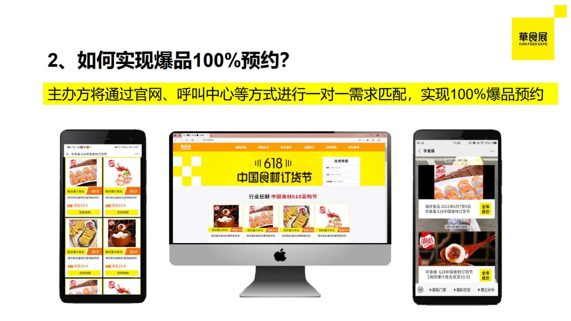 2、主办方将通过官网、呼叫中心等方式进行一对一需求匹配,实现100%爆品预约;