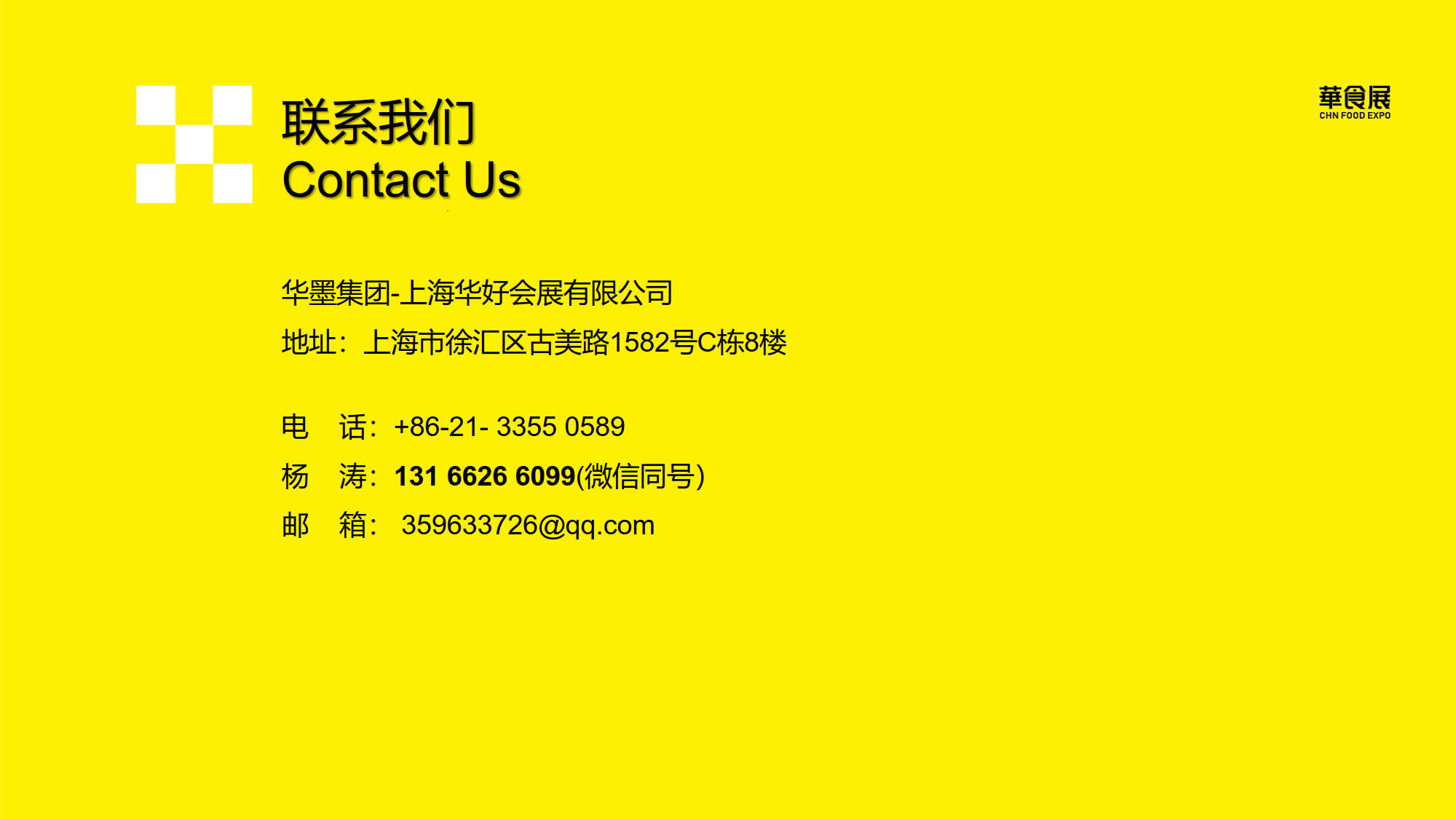 如预定“CFIE中国食材展-2021华食展”展位及了解更多信息,请联络组委会工作人员。