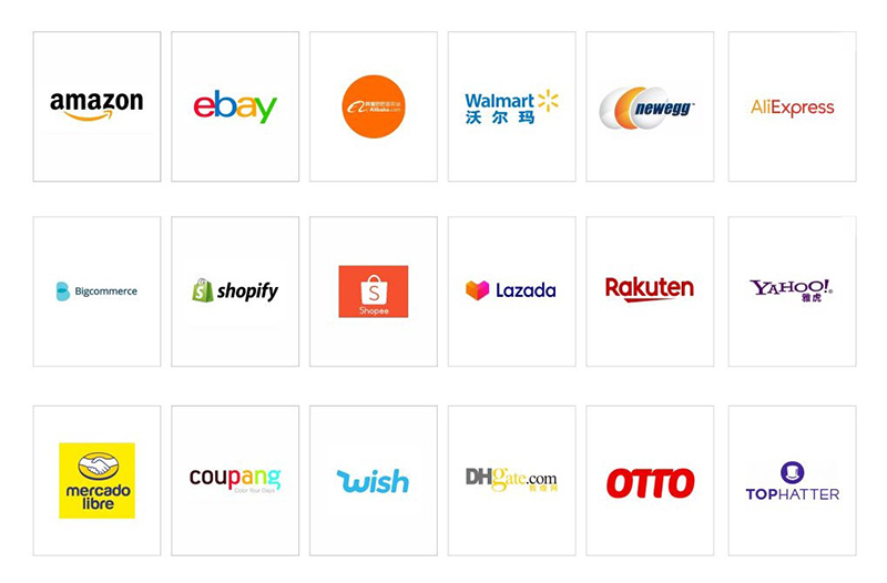 亚马逊、eBay、Wish、shopee、Lazada、joom、vova、Newegg、Tophatter、速卖通等