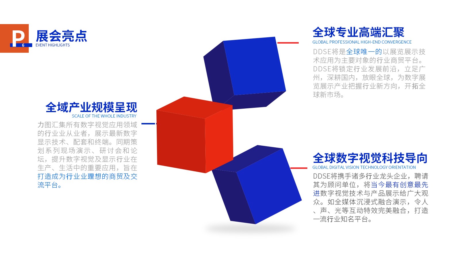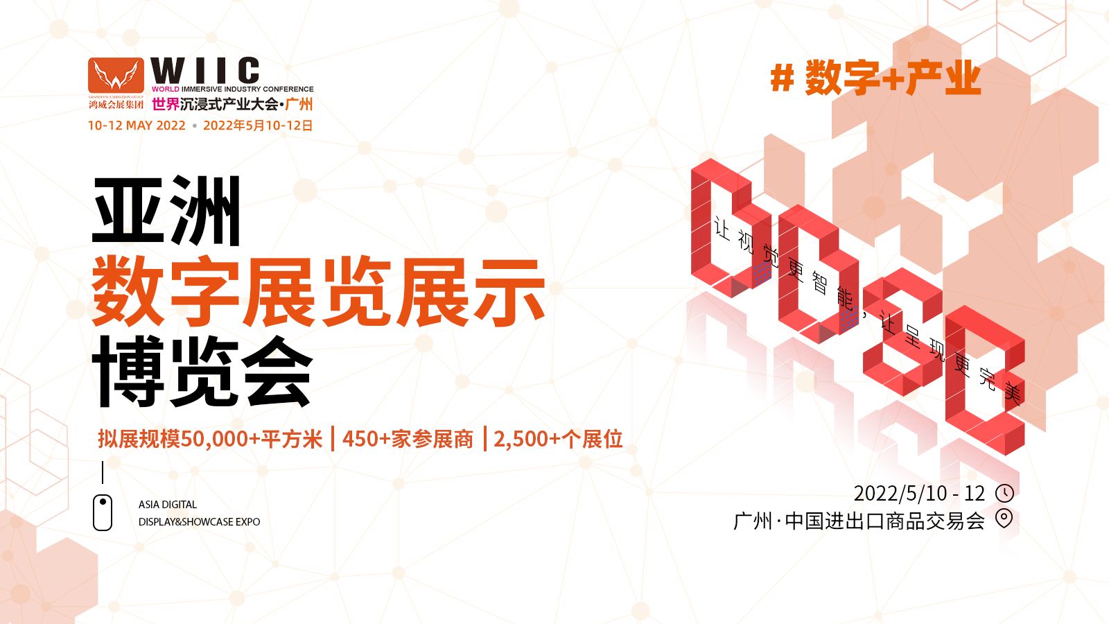 内容摘要: 亚洲数字展览展示博览会 Asia Digital DisplayShowcase Expo 时间:2022年5月10日-12日 地点:广州·中国进出口商品交易会展馆 拟展规模:50000+平方米;450+家参展商;2500+个展位 数字正无孔不入……
