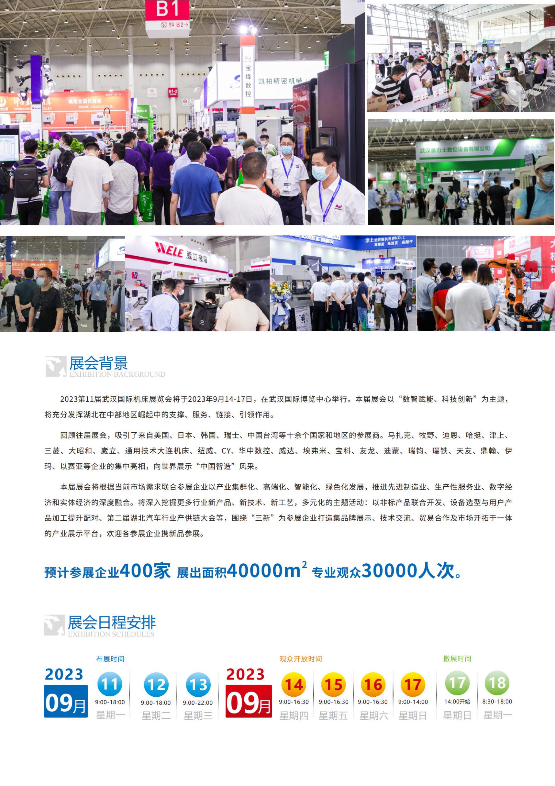 2023第11届武汉国际机床展览会将于2023年9月14-17日,在武汉国际博览中心举行。本届展会以“数智赋能、科技创新”为主题,将充分发挥湖北在中部地区崛起中的支撑、服务、链接、引领作用。