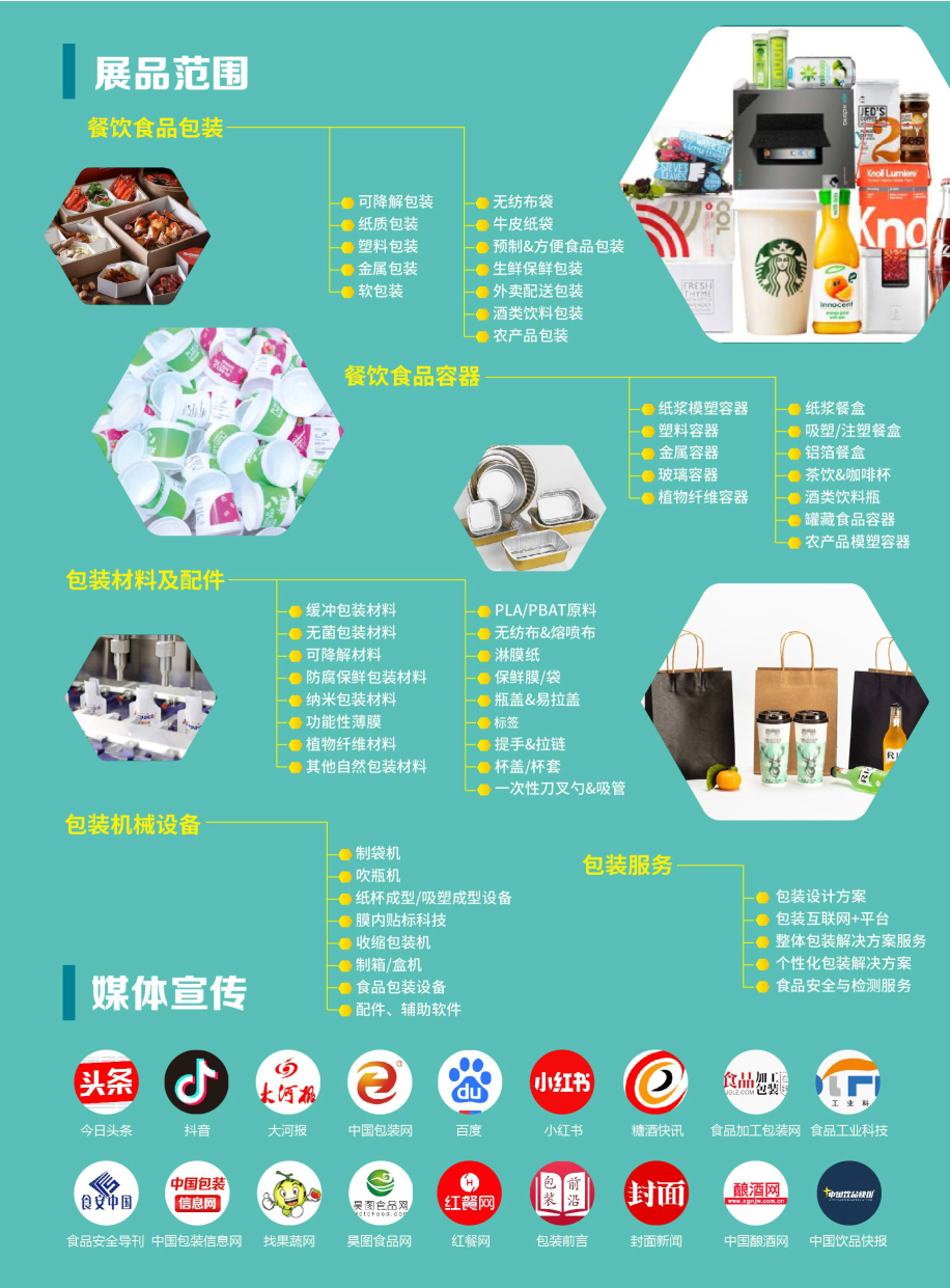 可降解包装,纸包装容器,纸浆模塑餐具,茶/果饮容器,西餐小食包装,铝箔制品,竹木制品,吸塑/注塑餐盒,预制食品包装,刀叉勺餐具,纸/PLA/竹制吸管,纸/PLA/无纺布包装袋,保温/保鲜/密封袋。