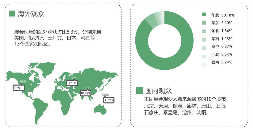 为期3天的展会共吸引了 45,218 名专业买家,较上届展会增长 6% ,其中国内观众来自 32 个 省、直辖市的专业买家,其中华北地区的观众占了相对比例 90.18% 。