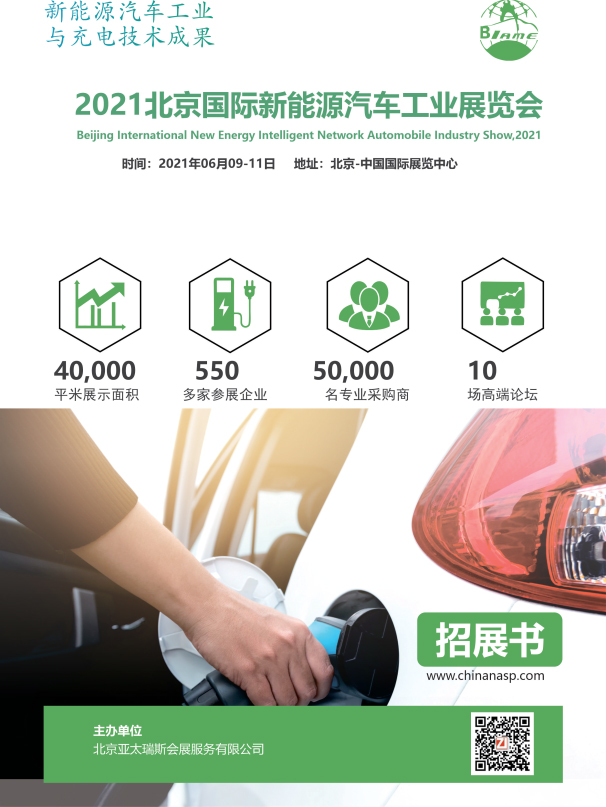随着首都经济圈、京津冀经济圈、雄安新区等等利好消息的公布及实施,为推动中国新能源汽车产业发 展,坚持电动化、网联化、智能化发展方向,深入实施发展新能源汽车国家战略,加快建设汽车强国。将于2021年06月09-11日在北京.中国国际展览中心举办“2021第十一届北京国际新能源汽车工业展览会”,本次展 会是“汽车制博会”旗下的一个以新能源智能网联汽车工业、新能源汽车三电、充电桩设备为主题的国际盛会。 预计展出面积40000平方米、参展企业预计550家、专业观众50000人次。本届展会将围绕整车、电子元器件、关键零部件、轻量化技术、新能源电池、氢能与燃料电池、新能源汽车三电、充电桩等特色展区。全面展示国内外智能网联汽车、新能源汽车、关键零部件和产业链上下游,以及关联领域的前沿科技和最新成果。力争 把展览会打造成为“世界一流 中国第一”的中国国际新能源汽车工业专业展览会, 创造工业展览和高端会展活动的最强品牌,搭建全球汽车最前沿科技展览展示和交流合作的最优质平台。