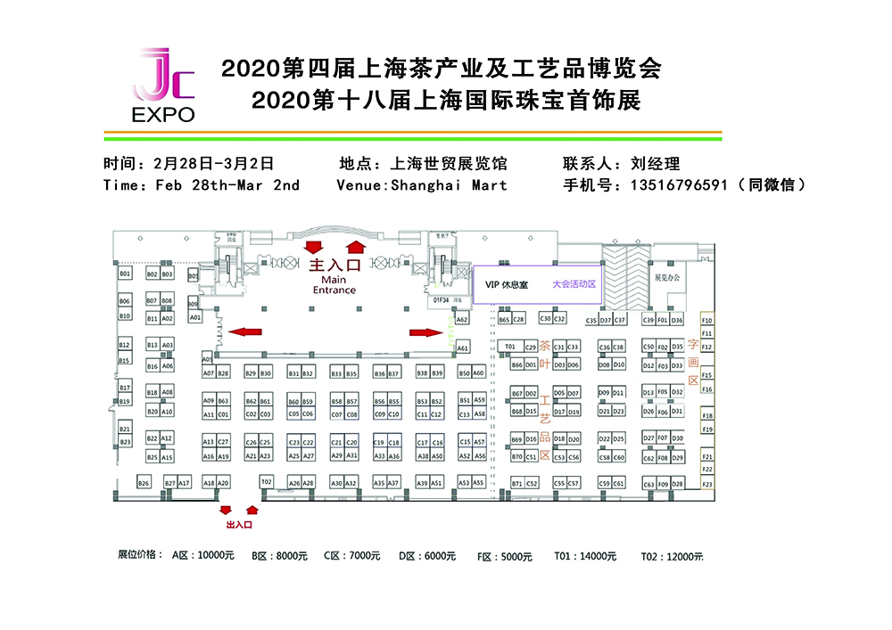 内容摘要: 2020第四届上海国际茶产业博览会 同期:2020第18届上海国际珠宝展 时 间:2020年2月28日 -3月2日 地 点:上海世贸商城展览馆 主办单位:中国茶叶学会 山西省茶叶学会 承办单位:上海信……