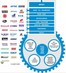 流体动力:博世力士乐、伊顿、派克汉尼汾、贺德克、西德福、哈威、索菲玛、泊姆克、盖茨、布赫、KTR、阿托斯、赫斯可萱场、油研、穆格、汉萨-福莱柯思、布雷维尼、DAIKIN、KAWASAKI、史陶比尔、英德诺曼、玛努利、巴鲁夫、费斯托、SMC、诺冠、CKD、小金井、纽迈司、康茂胜、 贺尔碧格、麦特沃克、亚德 客、恒拓高、妙德、气立 可、长拓、金器、新恭、NOK、 特瑞堡、SKF、德氏 封、KASTAS、司 达行、榆次液压、华德、 上海电气、黎明液压、海 特克、大众液压、上 海立新、圣邦液压、 镇江液压、无锡气动 所、中航力源、上海 新益、宁波索诺、宁 波佳尔灵、广研院等。