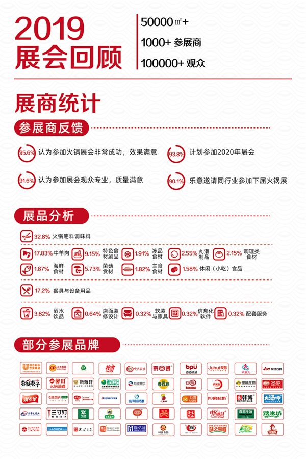 展会经过这几年的沉淀和不断完善,在行业内也得到了好的口碑与高度认可。第十届中国(成都)火锅食材用品展将继续在成都举办,参展厂家将达到400家,火锅专业观众(已开火锅店主、将开火锅店主、火锅配套代理服务商)达到6万人以上。本届展会将汇集全国火锅业最好的产品和技术,合力打造一场关于火锅食材与用品的饕餮盛宴!