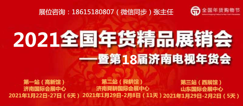 2021全国年货购物节暨第十八届济南年货会分别于1月22—27日、1月29-2月8日、1月29-2月2日济南国际会展中心、济南舜耕国际会展、山东国际会展中心中心依次举办。本届展会将更加注重参展企业利益、注重展会品牌价值、注重民俗文化传承,以全新的办展理念、丰富多彩的展会活动、全方位的广告宣传、细致周到的展会服务,把济南年货会打造成为集“展示、交流、销售、娱乐”为一体的全国性品牌盛会!