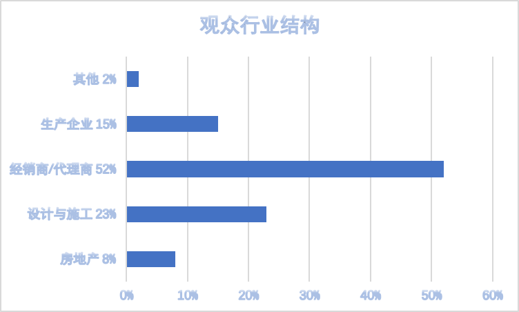 经过三年发展,展会定位聚焦为BTOB行业展会,展会观众更加聚焦,展会目标主要邀请三大类:房地产、设计与工程、经销代理商;三大类目标观众,比去年增长了36%。