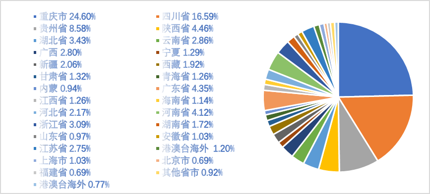本届展会西部十二省自治区观众占比达到68.68%,除去重庆本地观众占比的24.60%,十一个省市自治区观众占比44.08%,该比例超过整体观众的四成,也预示着重庆建博会辐射范围不断加大,已经成为西部重要的行业盛会。