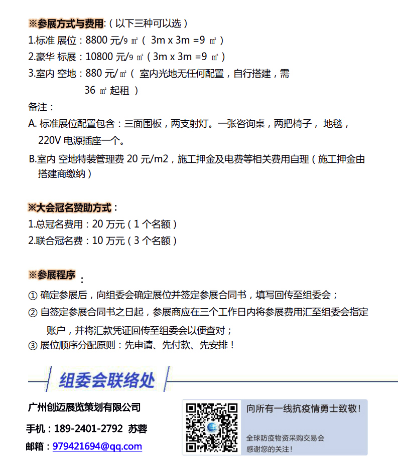内容摘要: 2020 全球防疫物资采购交易会(简称 GEPF) <全球一站式防疫医疗物资供需交易会〉联合主办:世界商业联合会 四川环球一带一路文化中心 主办单位:广州创迈展览策划有限公司 东莞……