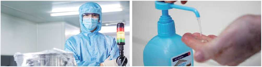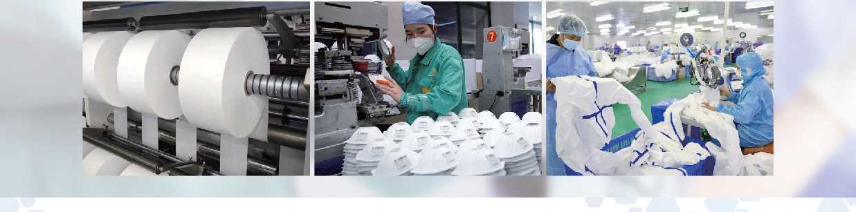 原辅材:防粘布、熔喷布、鼻梁条、松紧耳带、ABS塑料外壳、PCB电路板、液晶屏、传感器、 天然乳胶、防护服面料、防护服拉链、PTFE防护膜等;