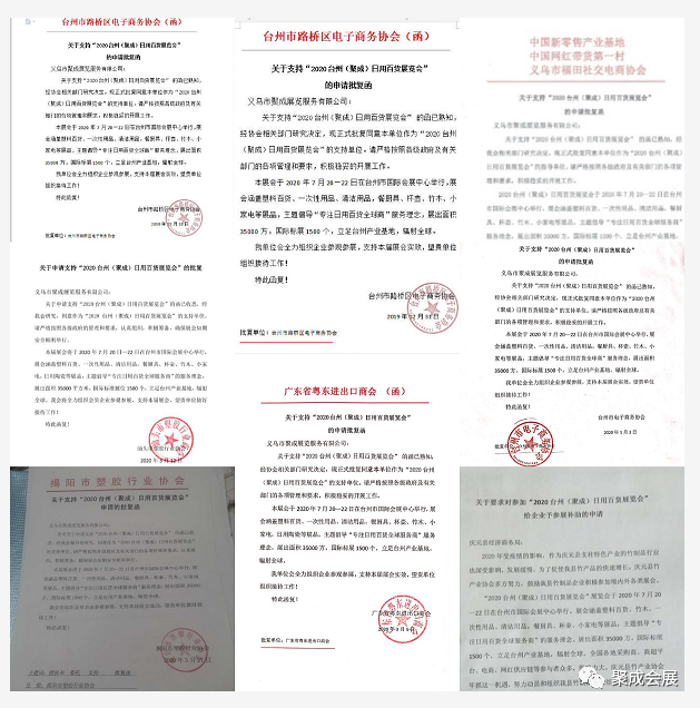 2020台州(聚成)日用百货展暨网红爆款博览会携手台州市电子商务协会,台州市路桥区电子商务协会,揭阳市塑胶行业协会,汕头市塑胶行业商会,广东省粤东进出口商会,庆元县竹产业行业协会助力,倾力打造百货盛宴!