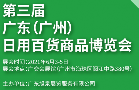 第三届广东(广州)日用百货商品博览会由广东旭泉展览服务有限公司主办,将于2021年6月3-5日在广交会展馆B区隆重举行。