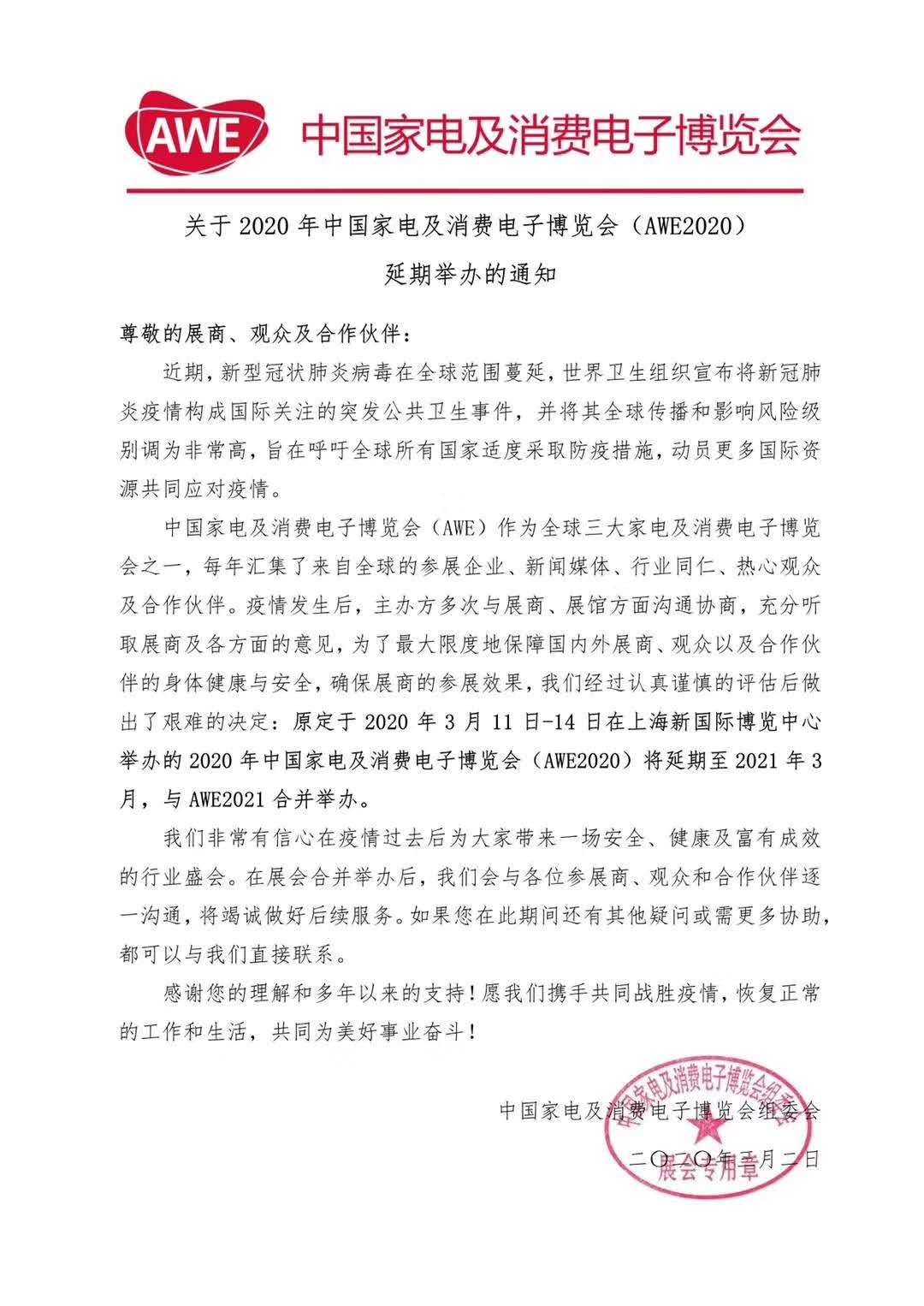 内容摘要: 2021年中国家电及消费电子博览会AWE 展会时间:2021年3月 地址:上海新国际博览中心 展馆:W1-W5. N1-N5. E1-E3 主办单位:中国家用电器协会 中国家电及消费电子博览会(Applianceelectronics……