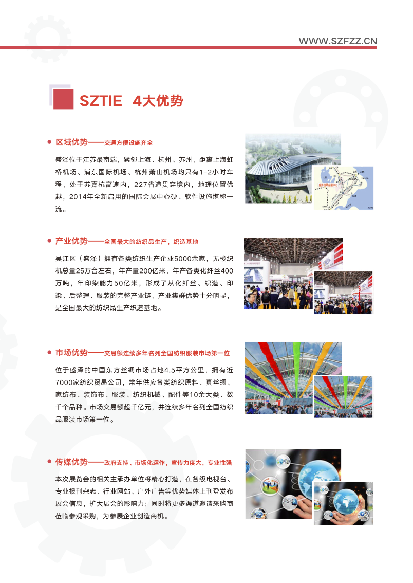 盛泽作为纺织名城和面料之都,已成为中国纺织品印花印染行业重要市 场,本届展会观众面向全国邀约,观众群体主要来自全国各家纺、服装及 成衣、棉纺、丝绸、面料加工、皮革、纺织前后整理等厂家负责人前来参 观采购,广告将重点投放在无锡、湖州、嘉兴、杭州、绍兴等区域,同时 邀约各地区纺织工业园代表前来交流洽谈。