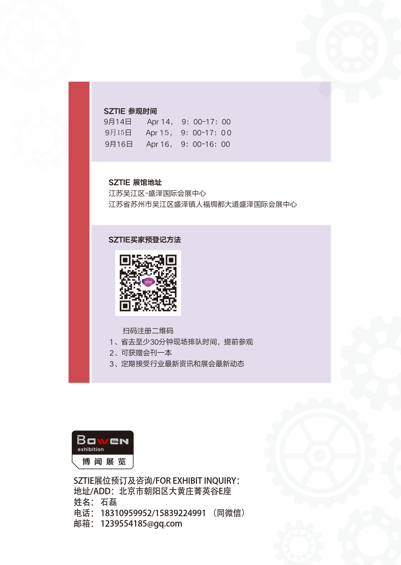 SZTIE展位预订及咨询/FOR EXHIBIT INQUIRY:
