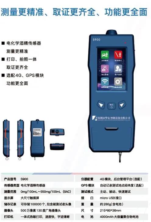 (1)呼出气体酒精含量检测仪S900