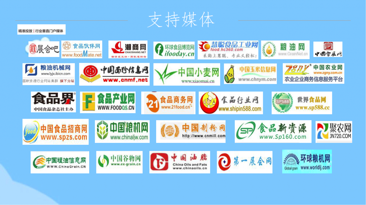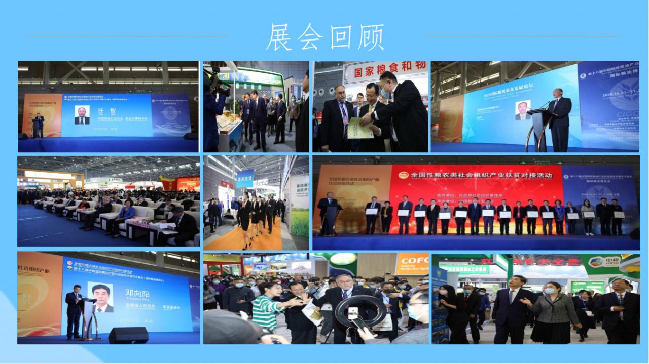 中国国际粮油产品及设备技术展示交易会创办于1999年,由中国粮食行业协会主办的粮油行业历史最久、 产品门类最全、档次最高、影响力的全国性乃至国 际性的专业品牌展会。粮油展经历了从依靠行政手段到 逐步走向市场化方式运作的发展过程,展会品牌知名度 和美誉度稳步提升,规模不断扩大,拥有相对稳定忠诚 的参展企业和专业观众群,已成为粮油行业的品牌盛会。