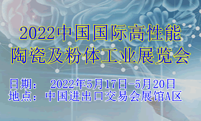 内容摘要: 20 22 中国国际高性能陶瓷及粉体工业展览会 展览日期: 20 22 年 5月 17 日 - 5 月 2 0 日 展览地点:广州 ·中国进出口交易会琶洲展馆A区 主办单位: 中国建筑材料联合会 中国建筑卫生陶……