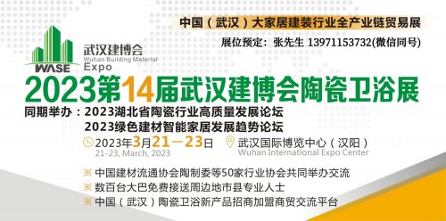 四月江城,春光明媚。“2023湖北省陶瓷行业高质量发展论坛”将在武汉国际博览中心举办,同期还将举办“2023第14届武汉国际绿色建筑建材及装饰材料博览会(简称武汉建博会),建博会多馆联展,其中B2定制建材装饰新产品特设陶瓷卫浴展示区,这是全国陶瓷卫浴产品首次在武汉建博会大型建材家居行业平台上亮相。(展.位预定:张先生139-7115-3732(微.信同号)