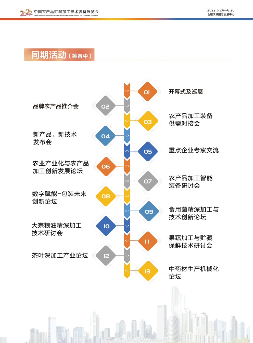 内容摘要: 2022中国农产品贮藏加工技术装备展览会 2022年6月3日-4日 合肥滨湖国际会展中心 10+论坛会议 20+参与省市 100+合作媒体 300+参展商 10000+专业观众 23000+平方米 展会介绍 近年来,我国农产品……