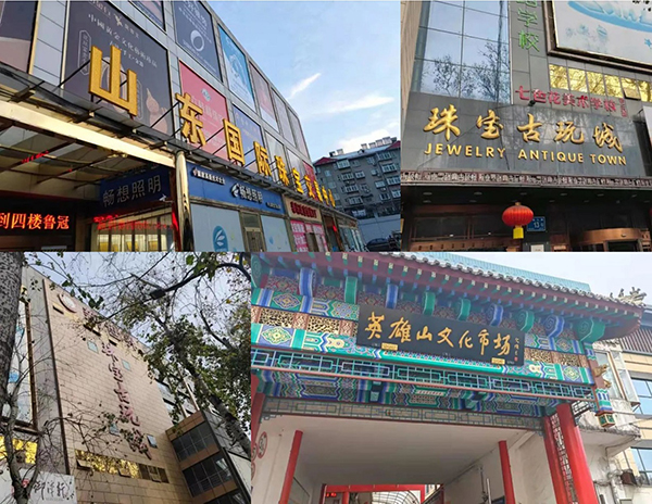 济南珠宝市场也形成了颇具规模的分布格局。其中,数百家商业圈云集国内中高档的珠宝品牌——专做钻石的金伯利则以“钻石宫殿”的宣传理念在济南开设了当时在中国最大的一家珠宝卖场;梵克雅宝、卡地亚、Tiffany&Co、宝格丽等奢侈品珠宝进驻山东高端购物中心——贵和、银座。国内大中型珠宝连锁零售企业——世纪缘珠宝总部设立在济南;齐鲁金店、太阳金店等济南本土珠宝品牌也已有相当规模的店铺;除了诸多的珠宝商圈,济南现有十余家专业珠宝批发市场,如万嘉隆珠宝批发市场、北方国际珠宝城、山东国际珠宝交易中心、新世界珠宝城等,规模均在三层以上。据不完全统计,约1850余家商户入驻其中。