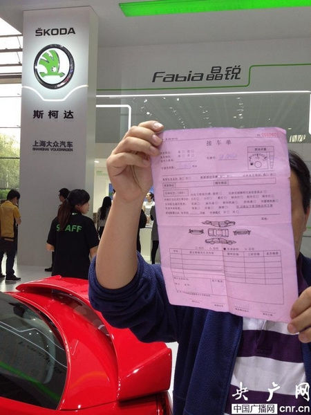 广州车展斯柯达车主展示维修单 图片来源央广网