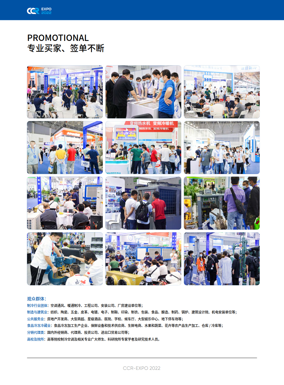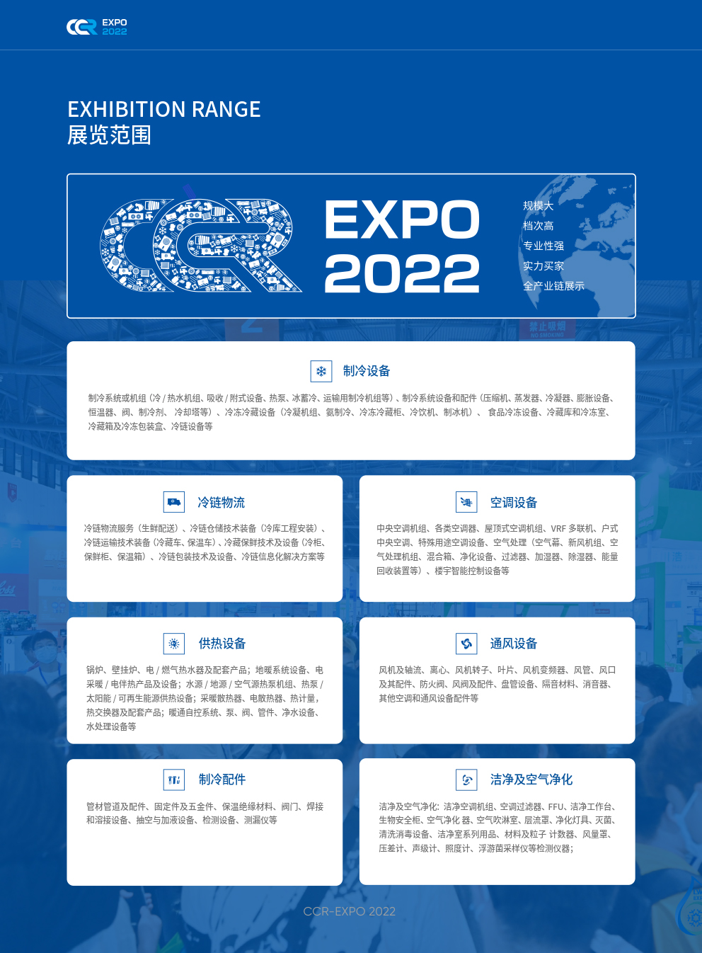 CCR2022中部制冷展,将继续以“创新高质发展,履行‘双碳’承诺、助推中部崛起、服务一带一路”为主题,力求以强大的品牌集聚效应,形成以展览、展示为基础,以高端论坛、学术交流为载体,打造产、学、研、设(计)、施(工)、用(户)、媒(体)高度融合的多元化宣传、展示平台。