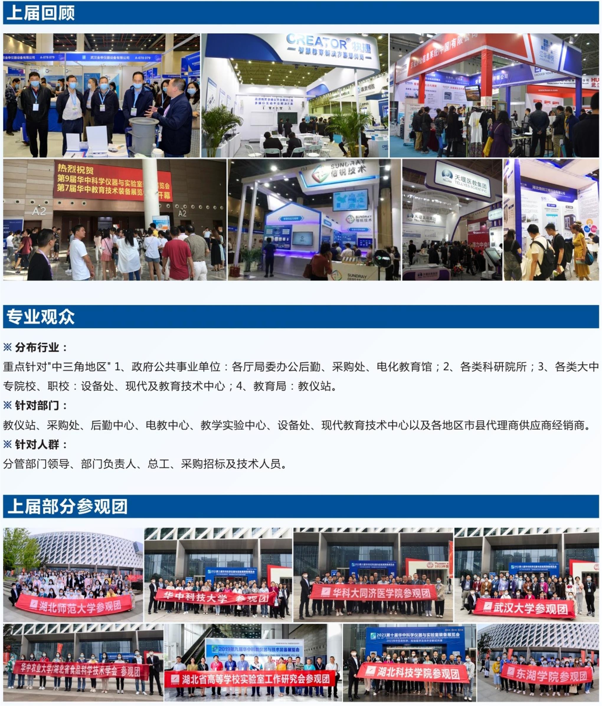 华中武汉教育装备展已经成功举办7届,获得武汉市东湖高新区高新技术类补贴会展项目,也成为湖北地区学校一年一度技术交流定点活动,最近三届每届汇聚湖北地区高校年50所以上。历届展商包括天煌、联想、天誉创高、希沃、华中数控、科明数码、锐竞信息、地创三维、信锐网科、华设科技、天堰医教、隆深机器人、太尔时代、曙光信息、博尔德、艾博德、智慧天下、兴和云等中外知名企业及武汉地区教育技术供应商。本届华中教育装备展将锐意进取,精心培育,实施“免费大巴接送、包午餐”参观组织模式,将组织湖北全省各高校、职校、教学仪器装备中心/站、电教馆/中心、现代教育技术中心、会议中心等众多参观团前来观摩交流,并同期举办“高教仪器与技术装备”等系列配套活动。