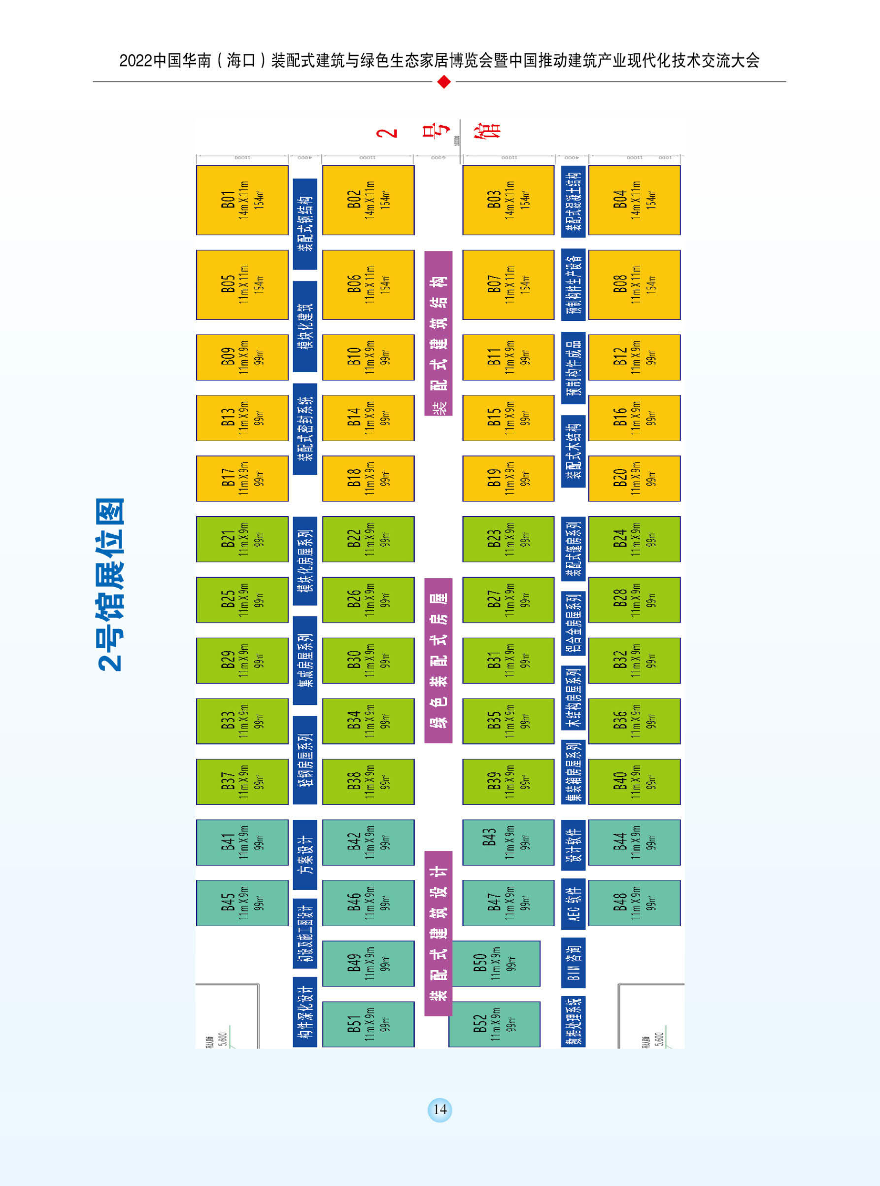本届“建博会”由“展览+会议”组成,规划展览面积5万 ㎡,各类展商800-1000家。将重点展示国内外最新住房城乡建 设领域装配式建筑与装配化装修、智慧建筑、智慧城市、海绵 城市、绿色建材、建筑节能、舒适系统、建筑实施综合解决方 案等八大展示内容。同期举办的“2022中国推动建筑产业现代 化技术交流大会”(一场主论坛、六场分论坛、两场对接会), 即2022绿色城市与绿色建筑发展论坛(主论坛)、全国装配式建筑交流大会、建筑家居产业绿色智能发展论坛、高品质住宅与 家居地下空间综合利用建设发展论坛、智能建造与低碳建筑国 际论坛、装配式钢结构建筑的现状与未来、绿色建材国际论坛、首届华南工程采购对接会、湛江(大湾区)一海南(自贸港)产业 协同共建对接会、中国智能制造与智慧生活发展论坛暨中国细 分领域影响力人物颁奖盛典、2022中国住区高质量发展论 坛暨第9届中国地产华表奖颁奖盛典。