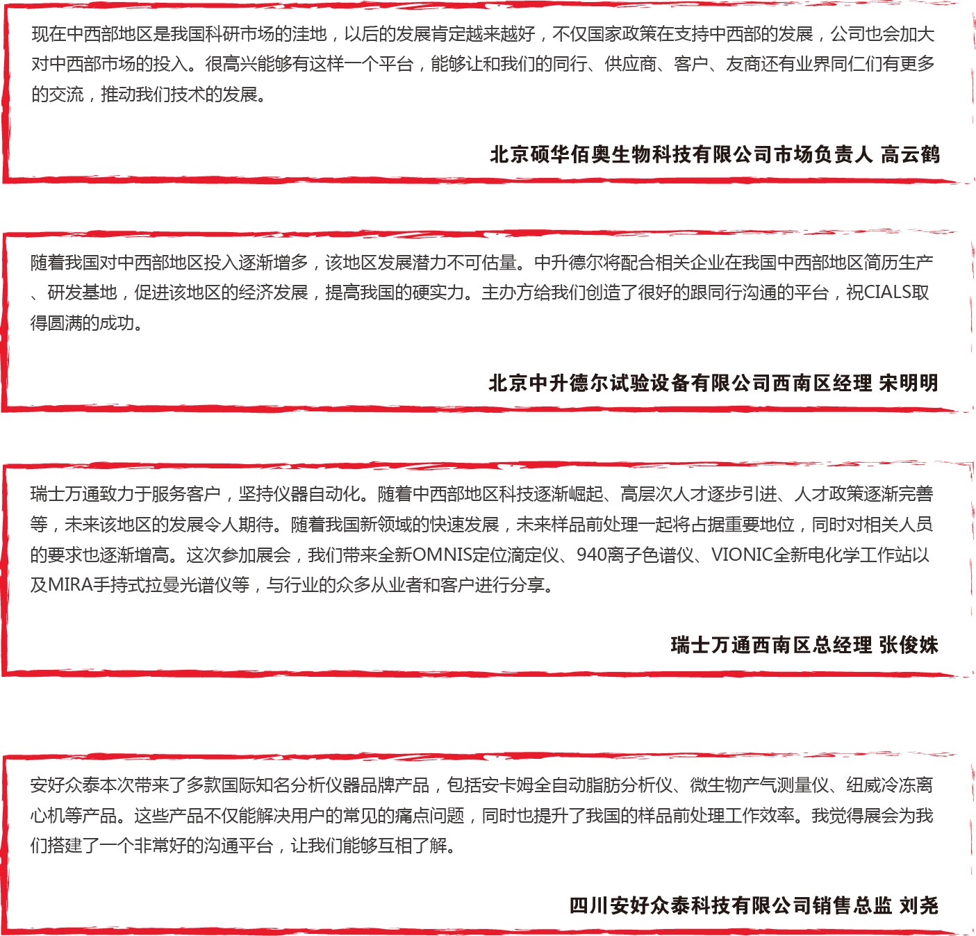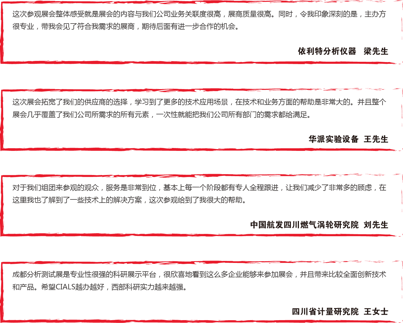 作为西部地区首次专业化、规模化的分析测试与实验室技术领域展览盛事,Cials2021不愧是行业参与企业高度评价赞赏和与会代表一致好评的行业先锋美称。