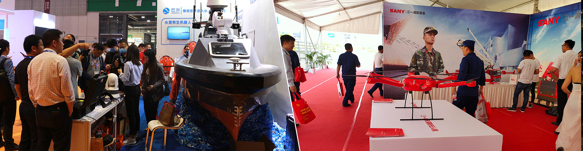 Ø 应急救援装备展区:灾害救援装备、应急救援探索检测设备、安防救生设备、破拆设备;消防装备、灭火设施和器材;应急照明、应急电力;医疗急救装备、医疗救护车辆、医疗防护设备;应急救通、特种车辆、船舶、直升机、无人机;特种机器人、人工智能机器人、水下机器人等;