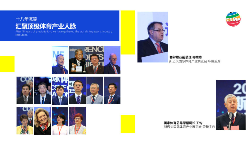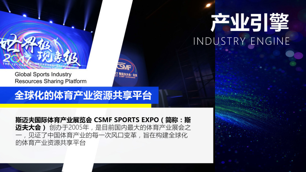 斯迈夫国际体育产业展览会 CSMF SPORTS EXPO(简称:斯迈夫大会)创办于2005年,是目前国内的体育产业展会之一,见证了中国体育产业的每一次风口变革,旨在构建全球化的体育产业资源共享平台。