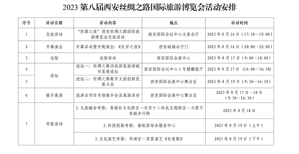 7.西安丝绸之路国际旅游博览会考察活动。