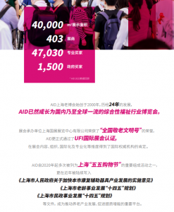 AID始创于2000年,由上海市民政局、上海市国际贸易促进委员会联合主办,上海市残疾人联合会特别支持,上海市养老服务发展中心和上海国展展览中心有限公司承办。历经24年的发展,AID已然成长为国内乃至全球一流的综合性福祉行业博览会。