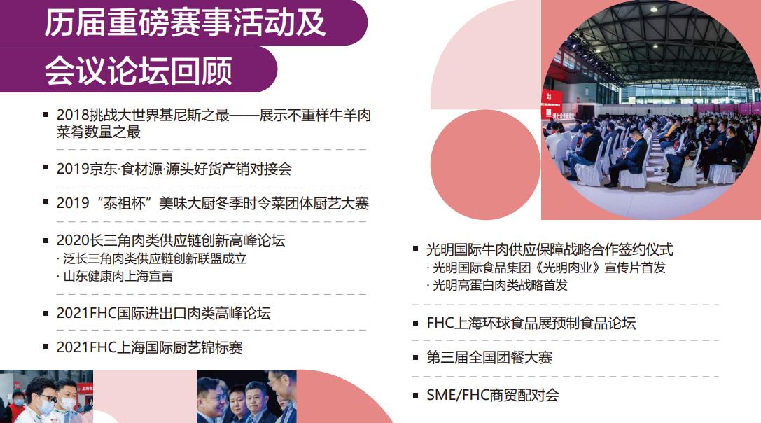 (一)客商升级:食无界,机无限SME中国(上海)国际肉类产业展携手FHC上海环球食品展演绎“食”代狂想曲!SME与FHC双展合并相互赋能,借助SME国内市场肉类行业品牌展及FHC全球食品综合展与国际食品及肉类商贸资源深度对接,充分发挥国际肉类市场专业观众与参会企业的沟通与交流。