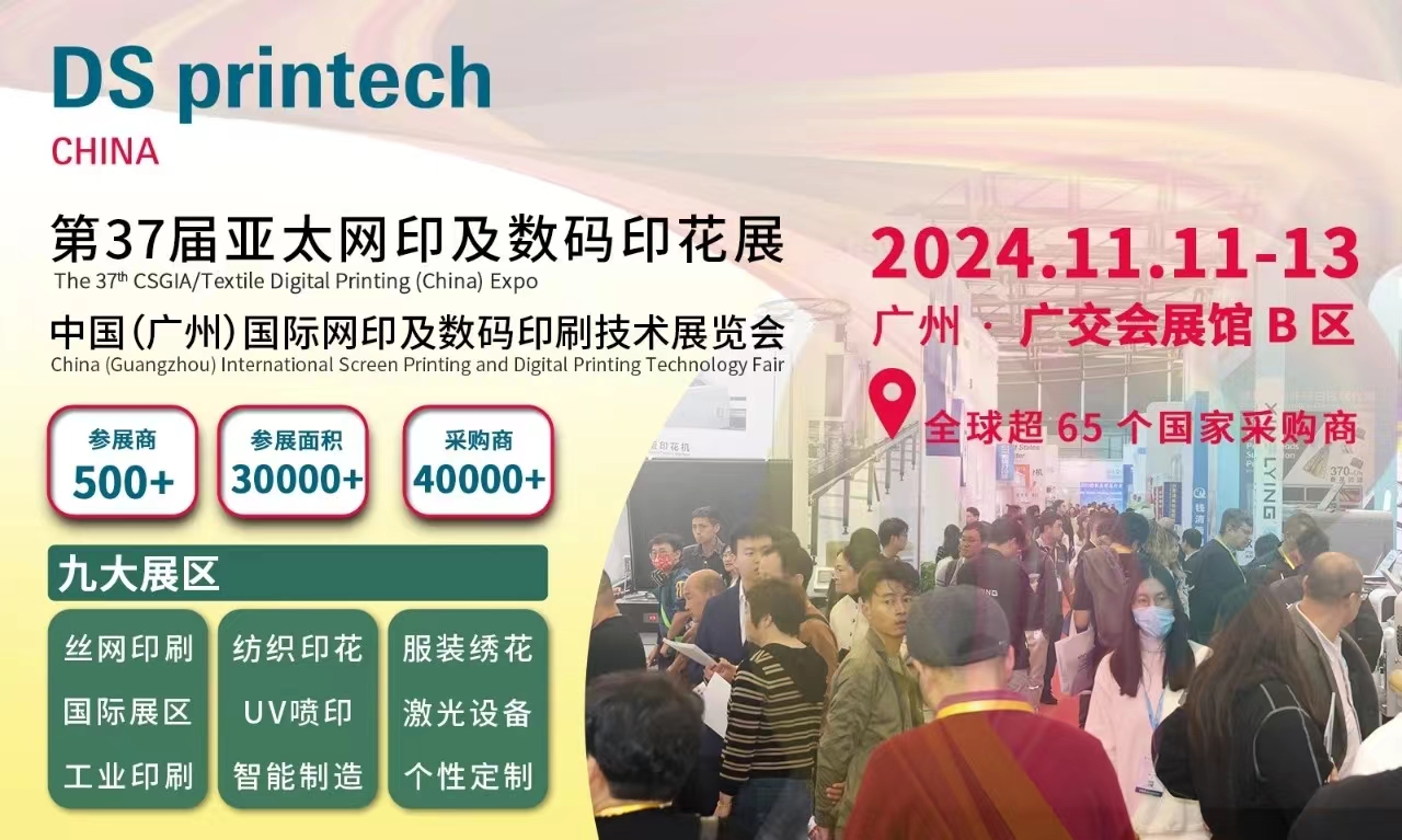 DS Printech China 中国国际网印及数码印刷技术展览会,是亚洲地区最具规模和影响力的丝网印刷、数码印花、工业印刷行业专业品牌展会,由中国印刷技术协会网印及制像分会(CSGIA)、广州市特印展览服务有限公司(TEYIN)、法兰克福展览(香港)有限公司(Messe Frankfurt(HK) Ltd)强强联合主办。自1983年创办以来,展会一直根据行业和市场的发展,不断融合创新,与国际丝网印刷、数码印花、工业印刷行业发展共同成长。