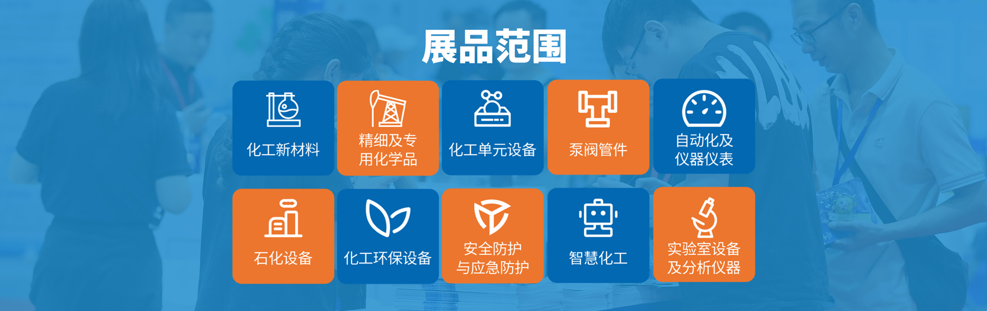 ★化工单元设备:粉碎、搅拌、混合、反应、传质、分离、过滤、浓缩干燥、蒸发结晶、换热传热、制冷、输送、储存、包装等化工生产设备; ★泵阀管件:泵、阀门、阀门配件、管道、管件、管材、风机、压缩机、真空设备、减速机等;★自动化及仪器仪表:化工专用仪器仪表、工厂自动化、电气自动化、工业机器人、智能识别、监视系统、自动化控制系统、液压件、液力件、气动元件、密封件、传感器、自动化及控制系统等;