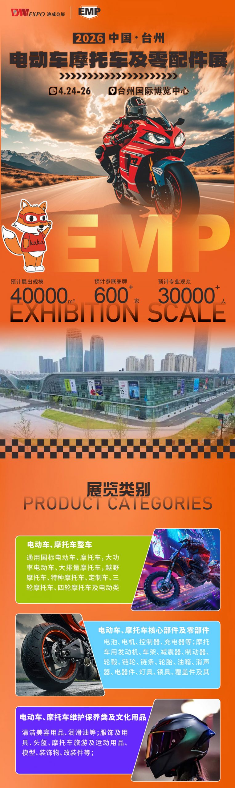 2026年4月24日至26日,备受瞩目的中国(台州)电动车摩托车及零配件展(EMP)将在台州国际博览中心隆重举行。作为电动车与摩托车行业的年度盛会,本届展会将以“创新驱动,智领未来”为主题,汇聚行业顶尖品牌、最新技术和前沿产品,为全球两轮出行产业搭建一个集展示、交流、合作于一体的国际化平台。
