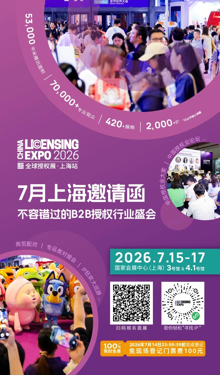 2026年,全球授权展·上海站(LEC)将迎来更具规模的第九届盛会。展会定于2026年7月15日至17日,在国家会展中心(上海)3号馆及4.1号馆举办。展出面积预计进一步扩大至53,000平米,汇聚420余家国内外优质展商,集中展示涵盖动漫形象、影视传媒、文博艺术、企业品牌等全品类超过2,000个海内外IP,致力于为每一位参与者打造资源富集、对接高效的一站式平台。