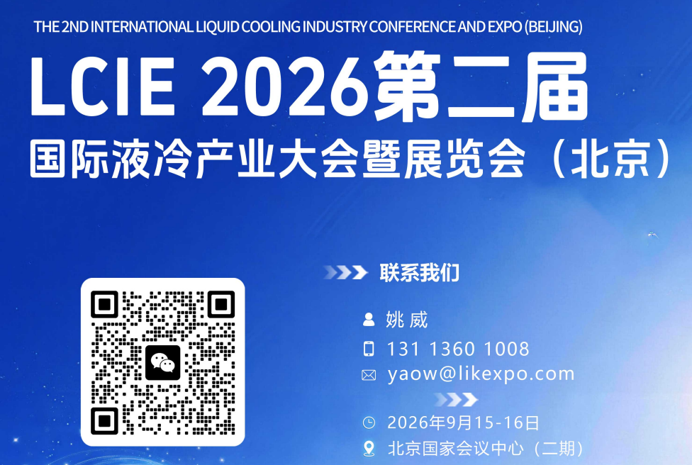 2026 年 9 月 15 日 - 16 日,"2026 第二届国际液冷产业大会暨展览会" 将在北京国家会议中心举办,展会将集中展示液冷产业的最新产品与技术,为企业树立较好的品牌形象,促进贸易合作。展会将集中展示液冷产业行业的最新产品与技术,为企业树立品牌形象,促进贸易合作、市场开发,引领行业趋势,加强生产、研发、销售互动,深入洞悉国内外液冷产业市场未来发展新风向,以发展的眼光挖掘未来液冷产业市场的新需求,创新展会内涵,全方位、多层次组织专业观众。