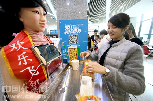开幕式现场展示的送餐机器人