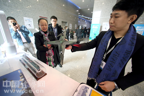开幕式现场展示的无人机产品。