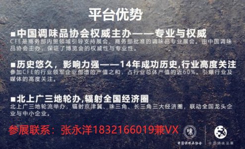 2019第15届中国(国际)调味品及食品配料博览会联络方式: