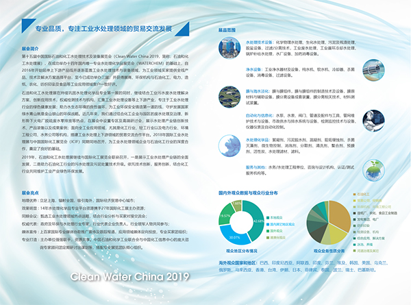 “第十五届中国国际石油和化工业水处理技术与装备展览会(Clean Water)“致力服务于石油和化工行业水处理创新技术及装备的应用发展,努力打造成为国际领先的石油和化工水处理技术及装备展示交流和贸易平台。
